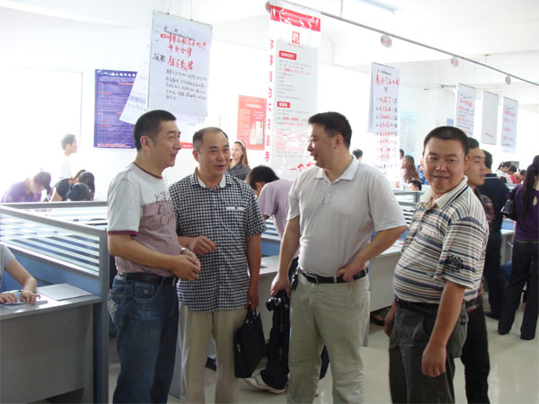 左二:眉山市人力資源和社會保障局黨組成員、調研員尹萬軍;左一:眉山市東坡區(qū)人力資源和社會保障局局長:詹金松; 右一:眉山市東坡區(qū)人力資源和社會保障局副局長:李思源
