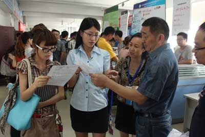 7月26日,2013年高校畢業(yè)生專場招聘會在市人力資源市場二部(原眉州人才市場)召開,市人力資源服務(wù)中心副主任、區(qū)委組織部副部長、區(qū)人社局局長詹金松蒞臨招聘會現(xiàn)場,對企業(yè)招聘情況、大學(xué)生求職意愿等進(jìn)行了調(diào)研,并現(xiàn)場為求職者講解大學(xué)生創(chuàng)業(yè)優(yōu)惠政策和畢業(yè)生報(bào)到流程,指導(dǎo)求職者如何正確擇業(yè)就業(yè)。此次專場招聘會共提供崗位1900余個(gè),求職人員約2200人次,求職畢業(yè)生約占60%,崗位涉及銷售、行政、生產(chǎn)技工等多個(gè)種類。在招聘過程中,許多企業(yè)取消了“具有相關(guān)工作經(jīng)驗(yàn)”的限制,各類綜合崗位也取消了專業(yè)限制,為畢業(yè)生就業(yè)拓寬了渠道,提供了更好的就業(yè)機(jī)遇。此次招聘會的召開也將2013年大中專畢業(yè)生招聘月活動正式拉開了序幕,招聘月活動將持續(xù)至8月底結(jié)束。
